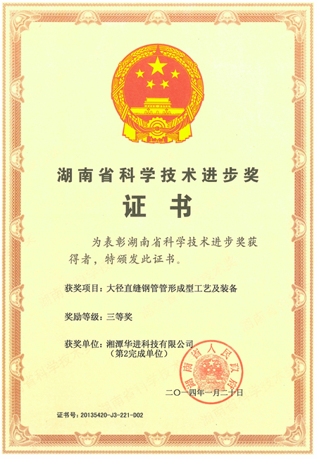 目前,湖南省科學(xué)技術(shù)廳公布了2013年湖南省科學(xué)技術(shù)進(jìn)步獎綜合評審結(jié)果,華進(jìn)科技“大徑直縫鋼管管型成型工藝及裝備”項目榮獲2013年度湖南省科技進(jìn)步三等獎。