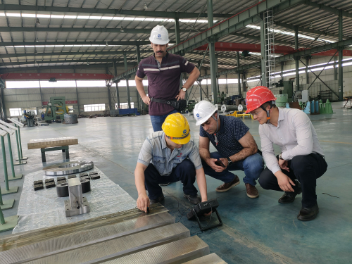 2019年5月31日上午,Sadid Industrial Group公司客戶代表到公司進行36"~46"擴徑頭總成材料及加工生產情況進行驗收。此次生產的鋼管全長擴徑機核心部件擴徑頭總成采用全新的設計形式,與客戶單位SMS MEER 公司擴徑機進行配套,是中國制管設備擴徑部件首次得到中東客戶的認可,進入國際市場。