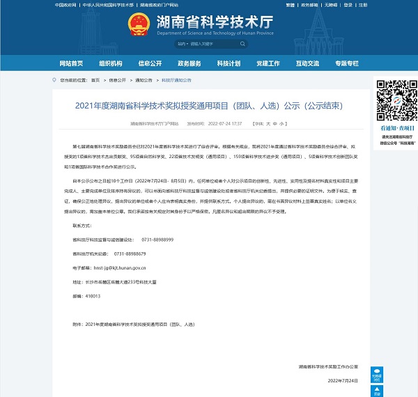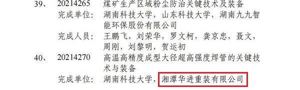 2022年7月24日,湖南省科技廳發布了2021年度湖南省科學技術獎擬授獎通用項目通知。由我司與湖南科技大學聯合申報的《高溫高精度成型大徑超高強度焊管的關鍵技術與裝備項目》通過第七屆湖南省科學技術獎勵委員會綜合評審,評定為2021年度湖南省科技進步二等獎。